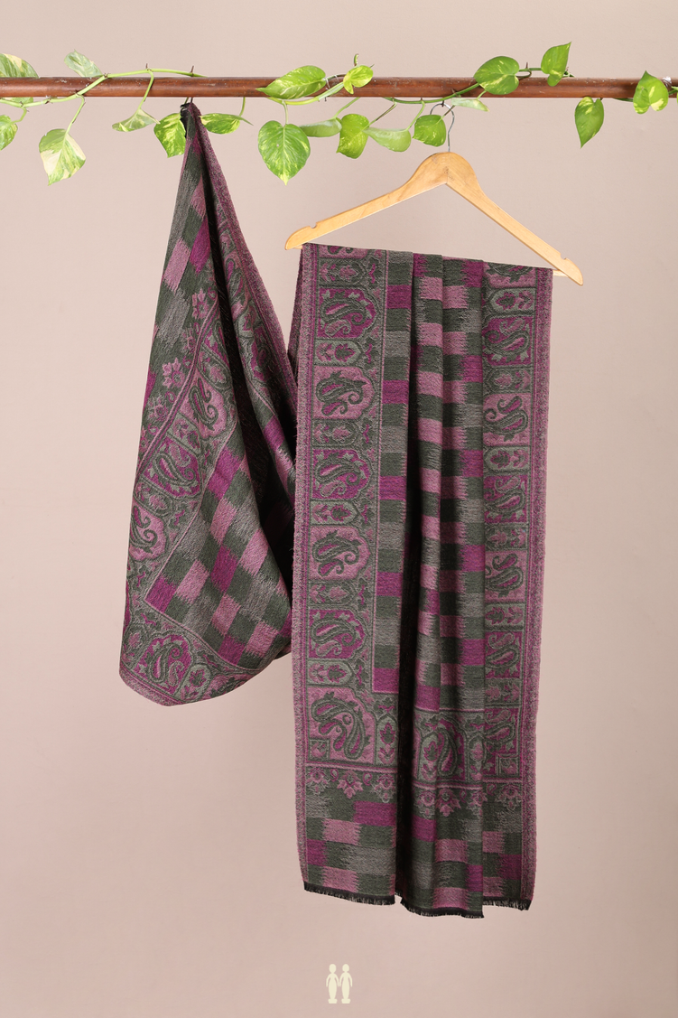 Threadwork Design Grey And Purple Woolen Cotton Shawl