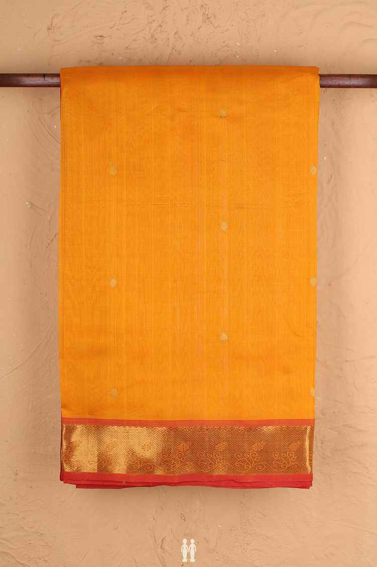 Traditional Silk Cotton Saree Royal Orange With Rudraksh Buttas