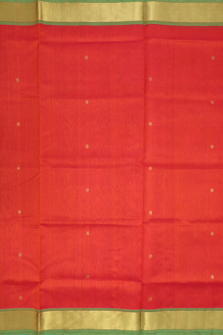 Silk Cotton Saree In Vermillion Red With Rudraksh Buttas