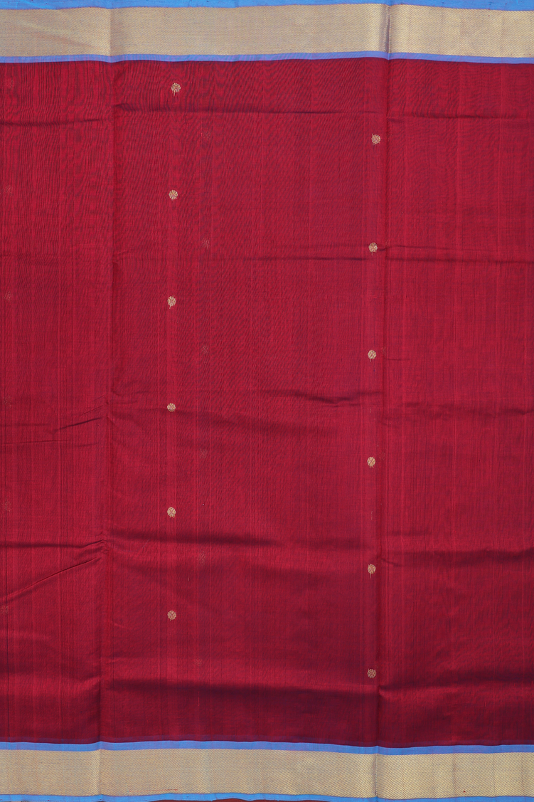 Traditional Silk Cotton Saree Burgundy Red With Zari Buttas