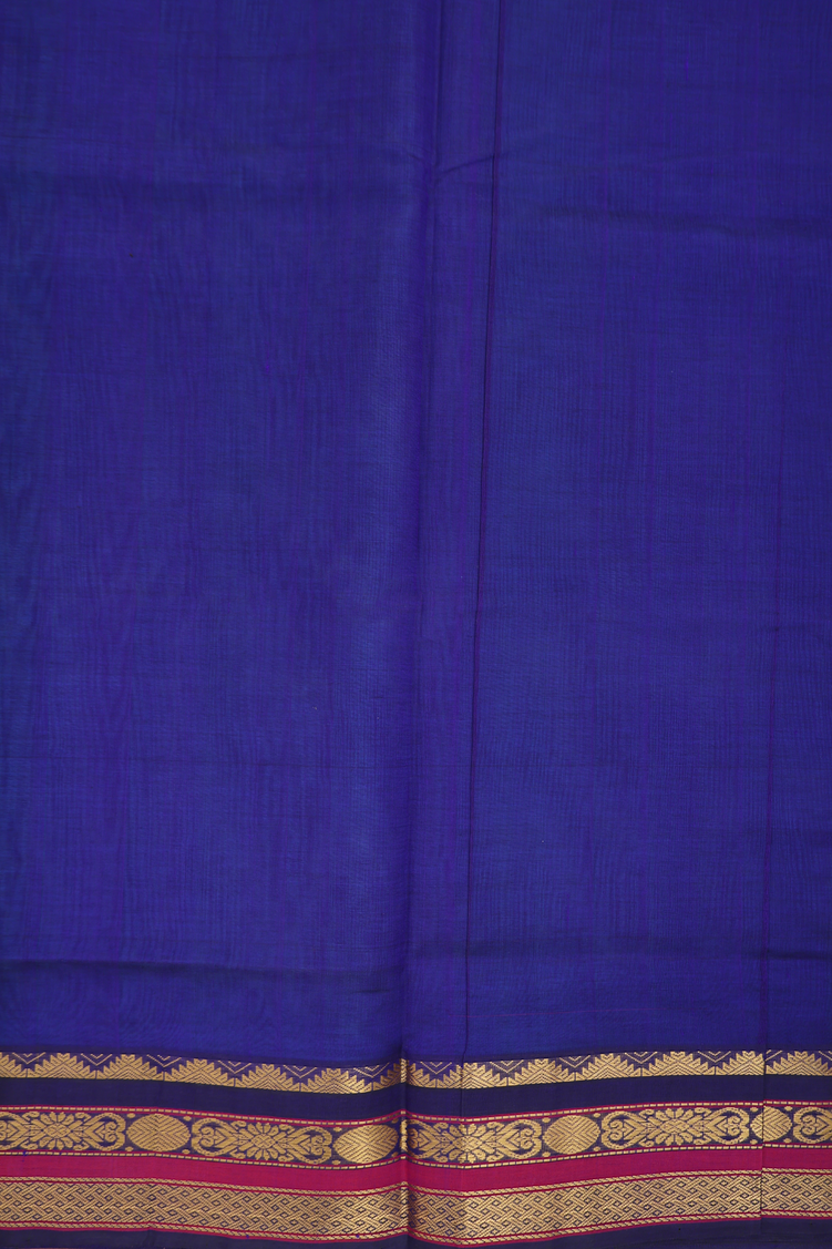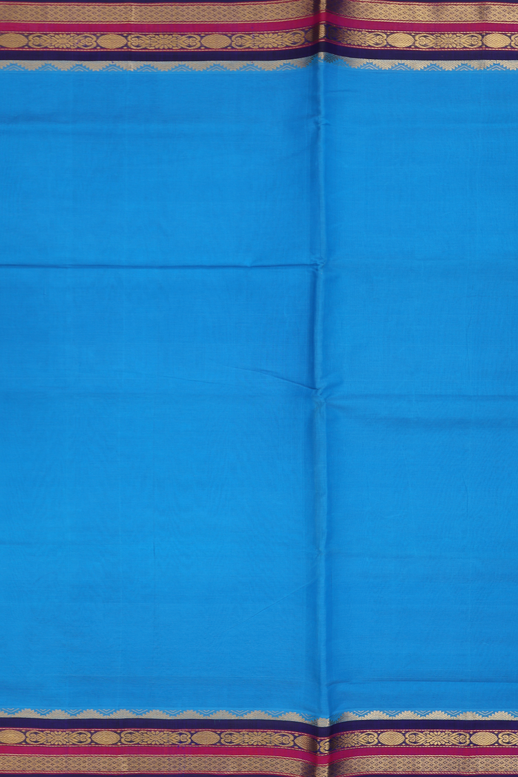 Traditional Silk Cotton Saree In Blue With Zari Border