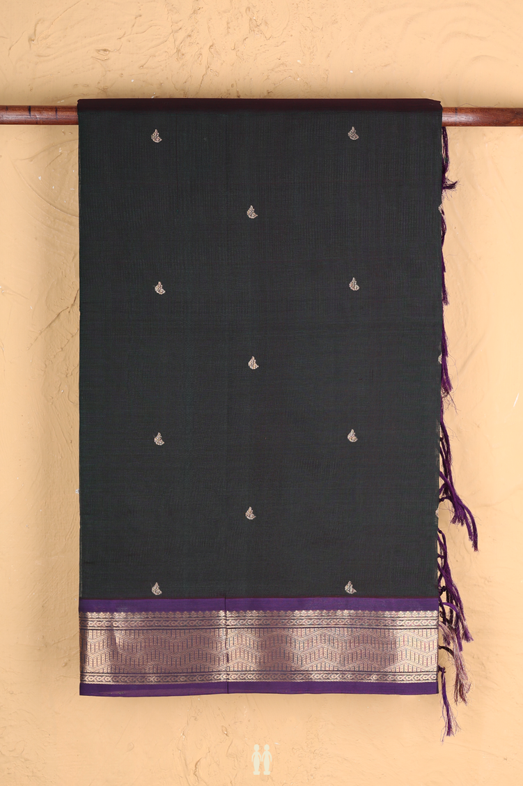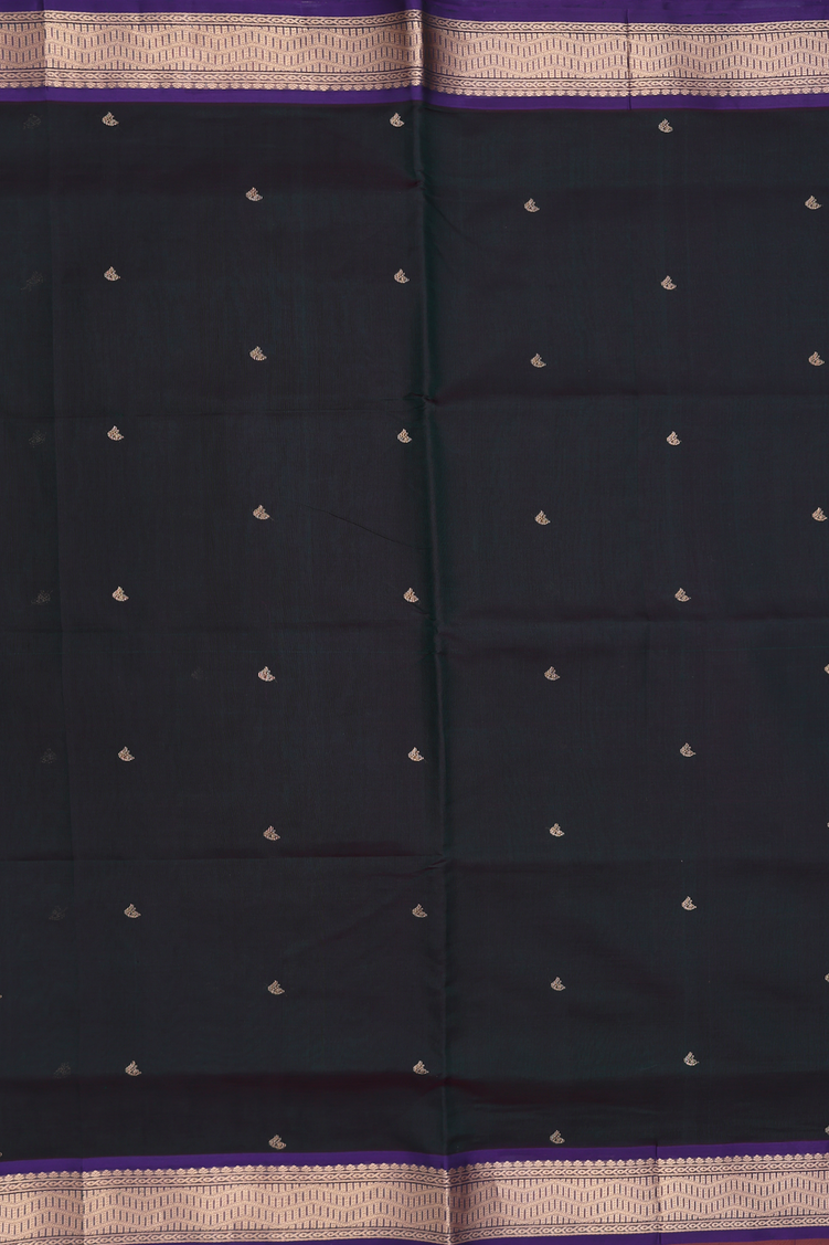 Traditional Silk Cotton Saree In Bottle Green With Zari Buttas