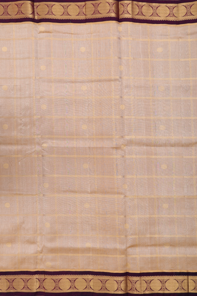 Elevate your ethnic wardrobe with this exquisite silk cotton saree, a harmonious blend of tradition and refined elegance. Rendered in warm tan brown with plum purple border pallu and blouse, the fabric features a subtle checks design that adds visual depth and contemporary appeal to a timeless silhouette. The natural drape of silk cotton ensures comfort throughout the day while maintaining a graceful, sophisticated appearance. Perfect for festive occasions, family gatherings, or cultural celebrations, this saree seamlessly transitions from day to evening wear. The versatile color palette pairs effortlessly with traditional jewelry and accessories, making it an essential addition to any discerning woman's collection.