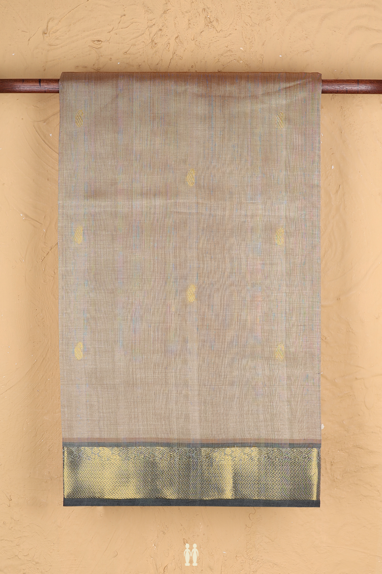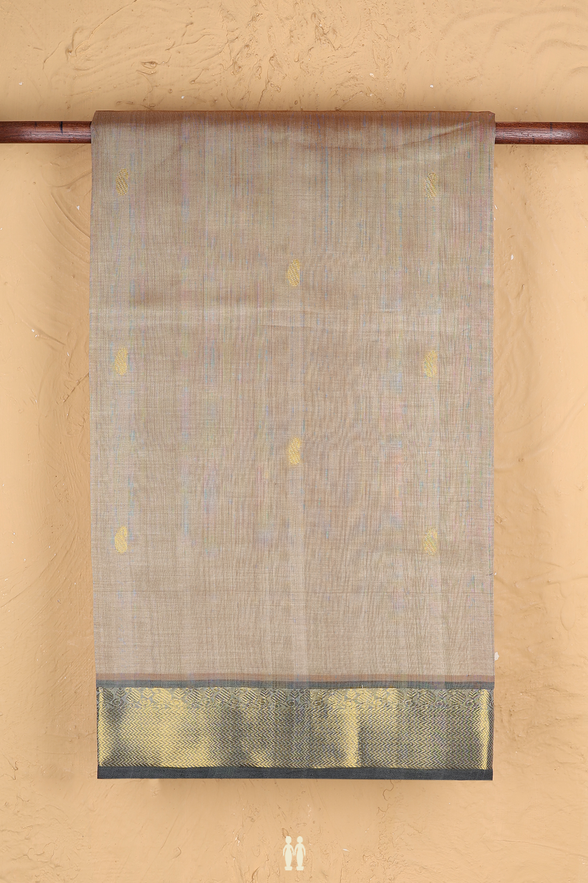 Traditional Silk Cotton Saree In Brown With Paisley Buttas