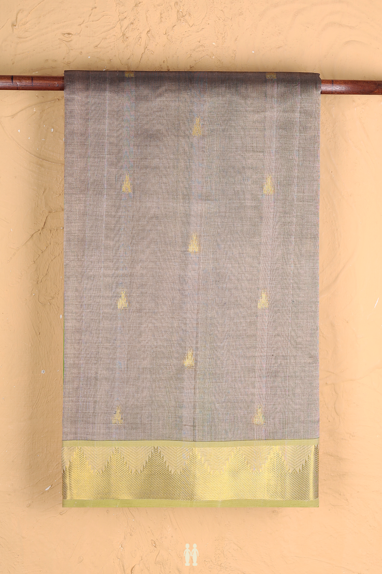Traditional Silk Cotton Saree In Brown With Temple Buttas