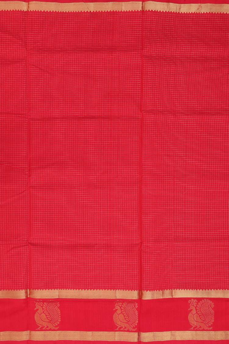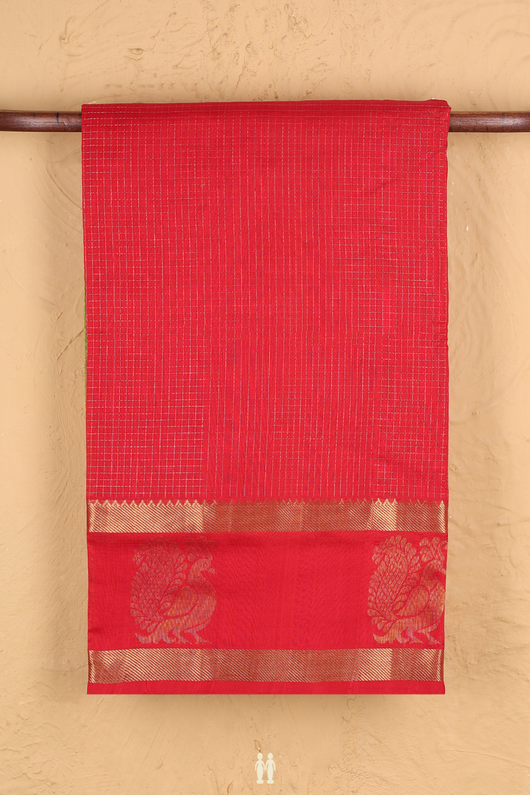 Traditional Silk Cotton Saree In Chilli Red With Checks Design