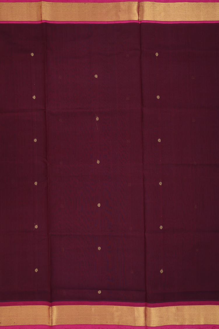 Traditional Silk Cotton Saree In Dark Brown With Floral Buttas