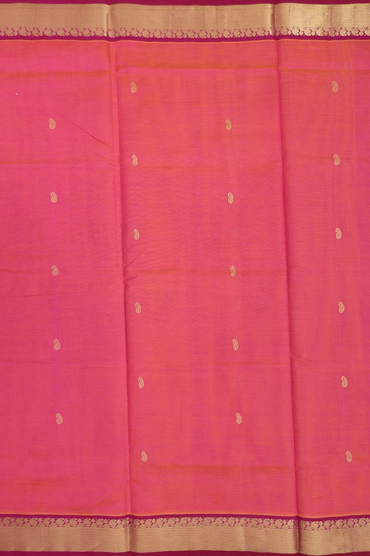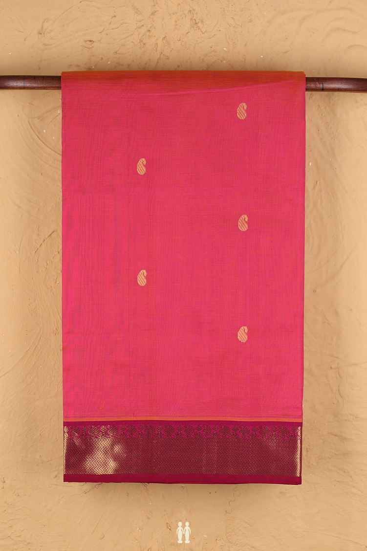 Traditional Silk Cotton Saree In Dual Tone With Paisley Buttas
