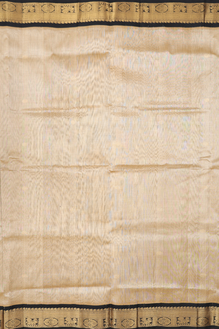 Traditional Silk Cotton Saree In Khaki With Rudraksh Buttas