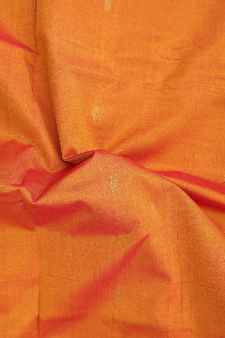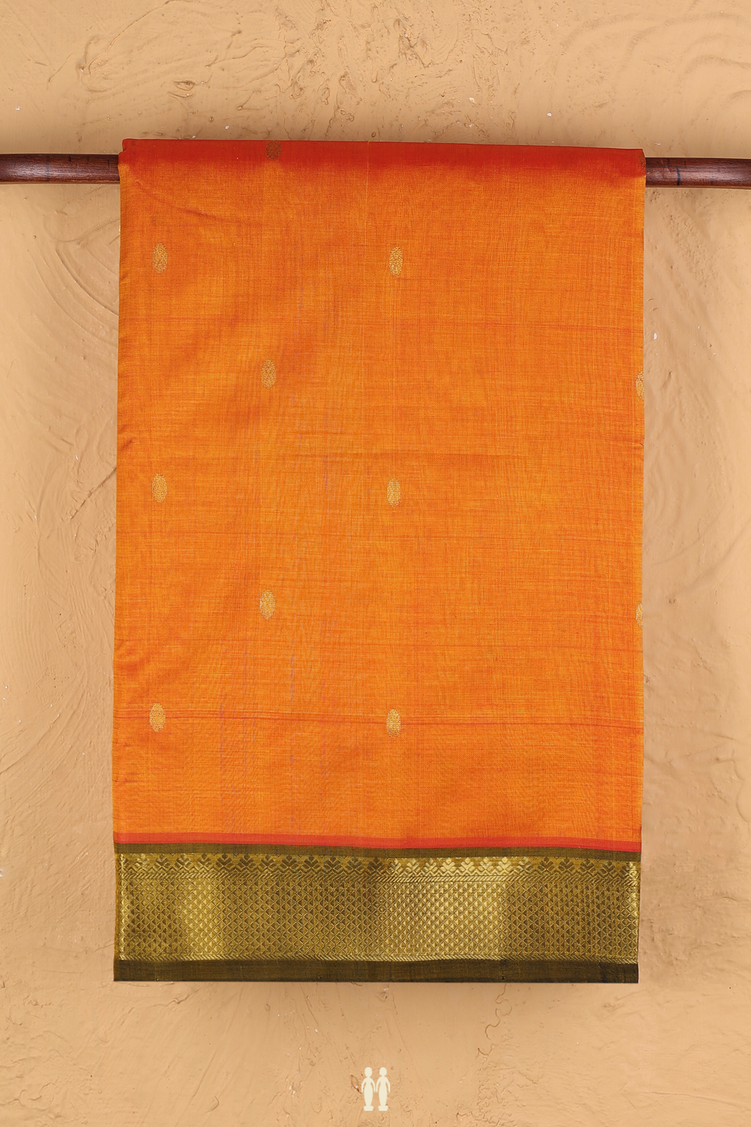 Traditional Silk Cotton Saree In Orange With Rudraksh Buttas