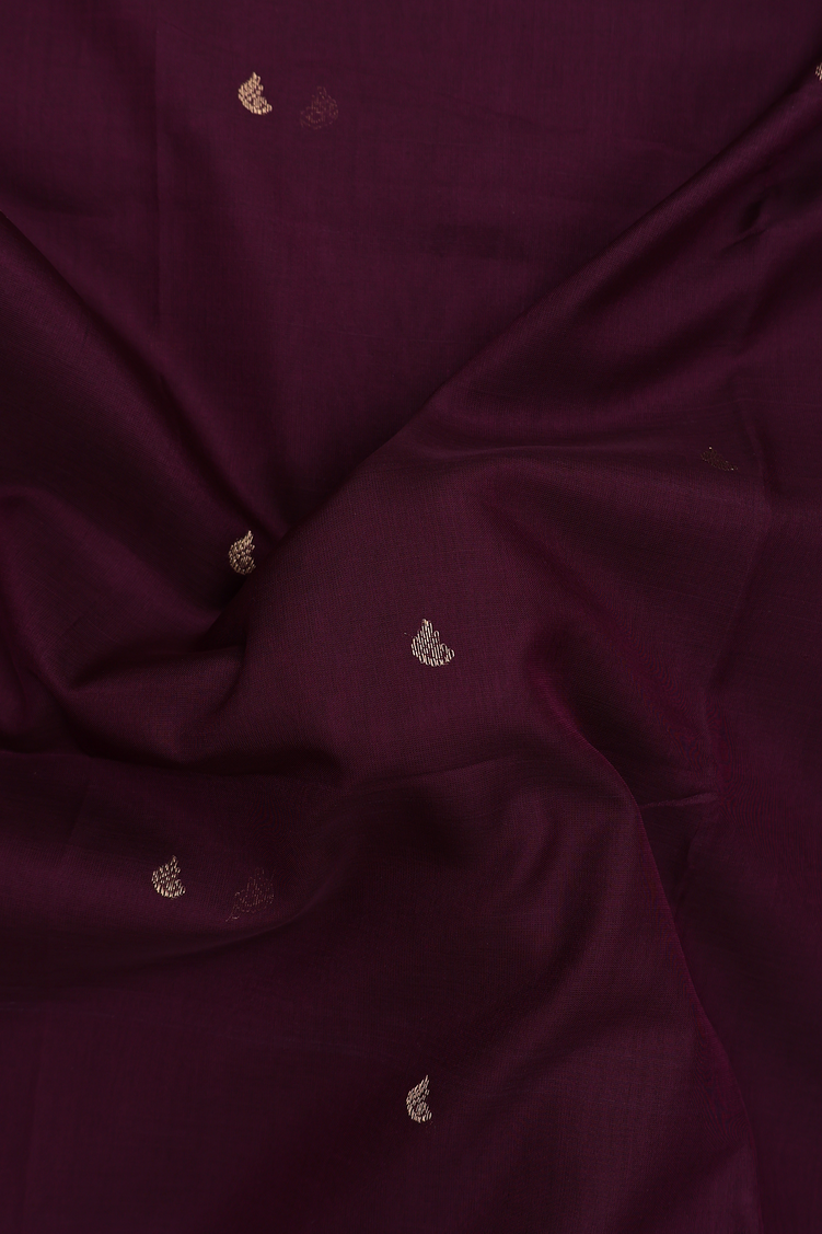 Traditional Silk Cotton Saree In Plum Brown With Zari Buttas