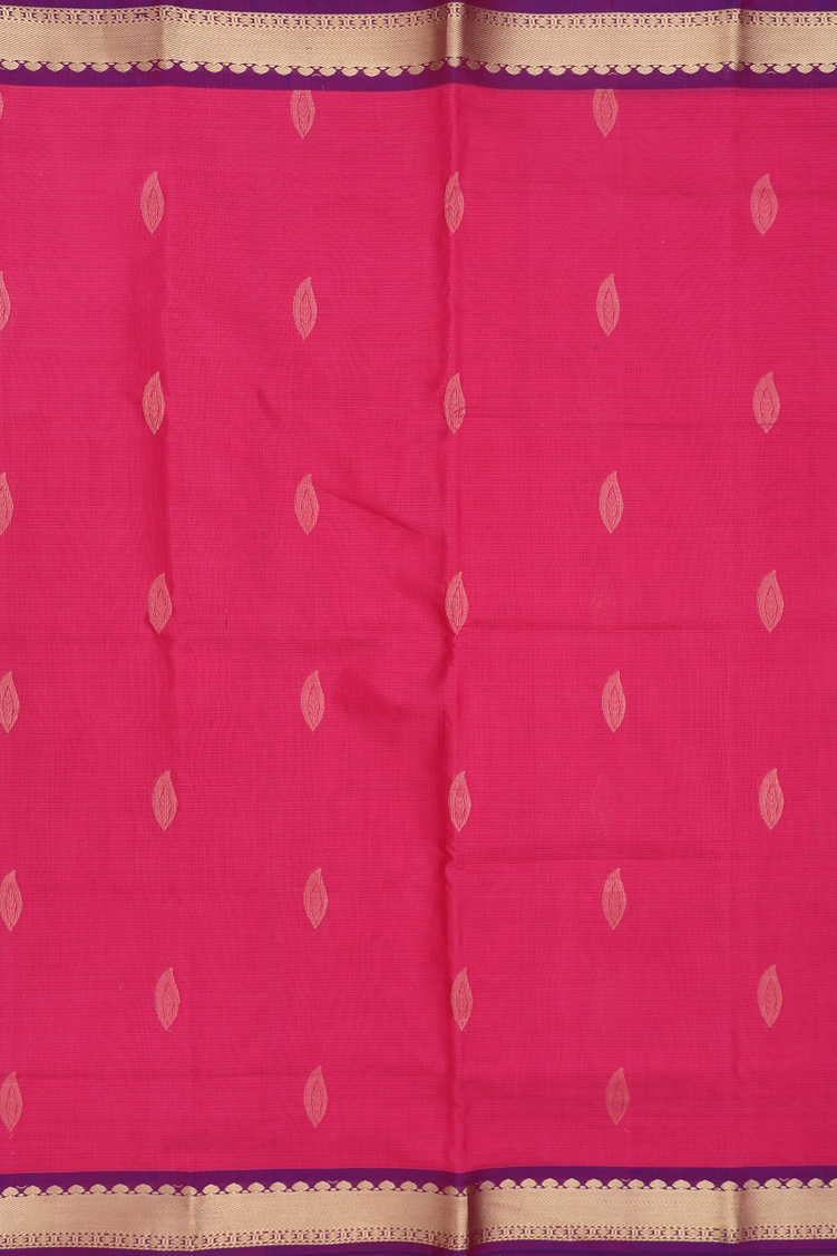 Traditional Silk Cotton Saree In Rani Pink With Zari Buttas