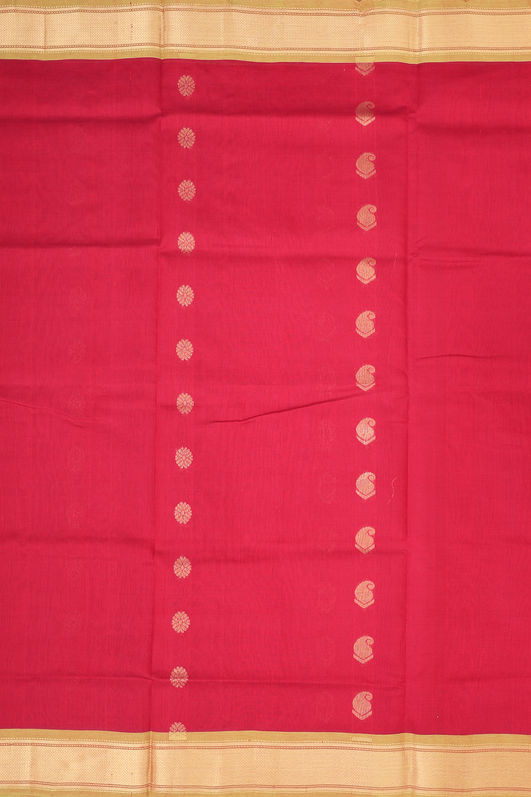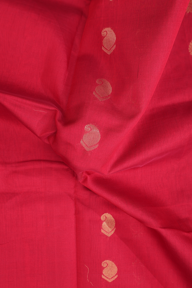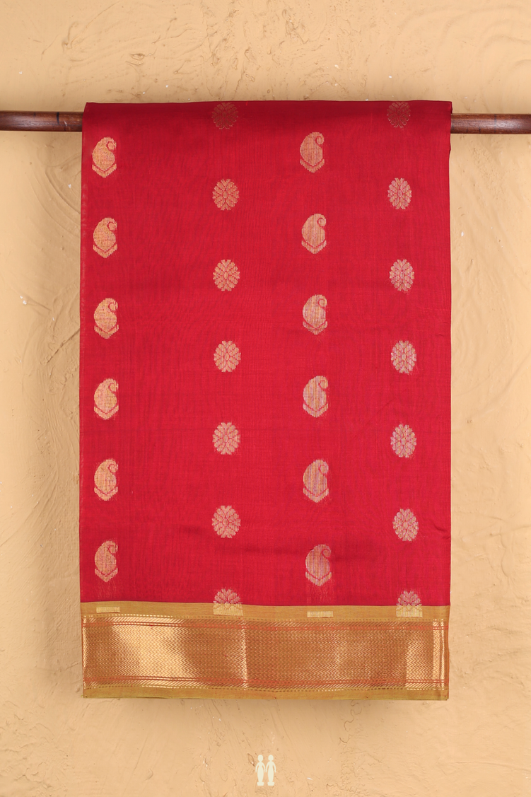 Traditional Silk Cotton Saree In Red With Paisley Buttas