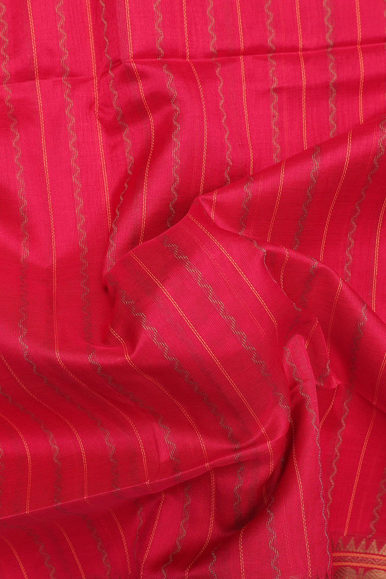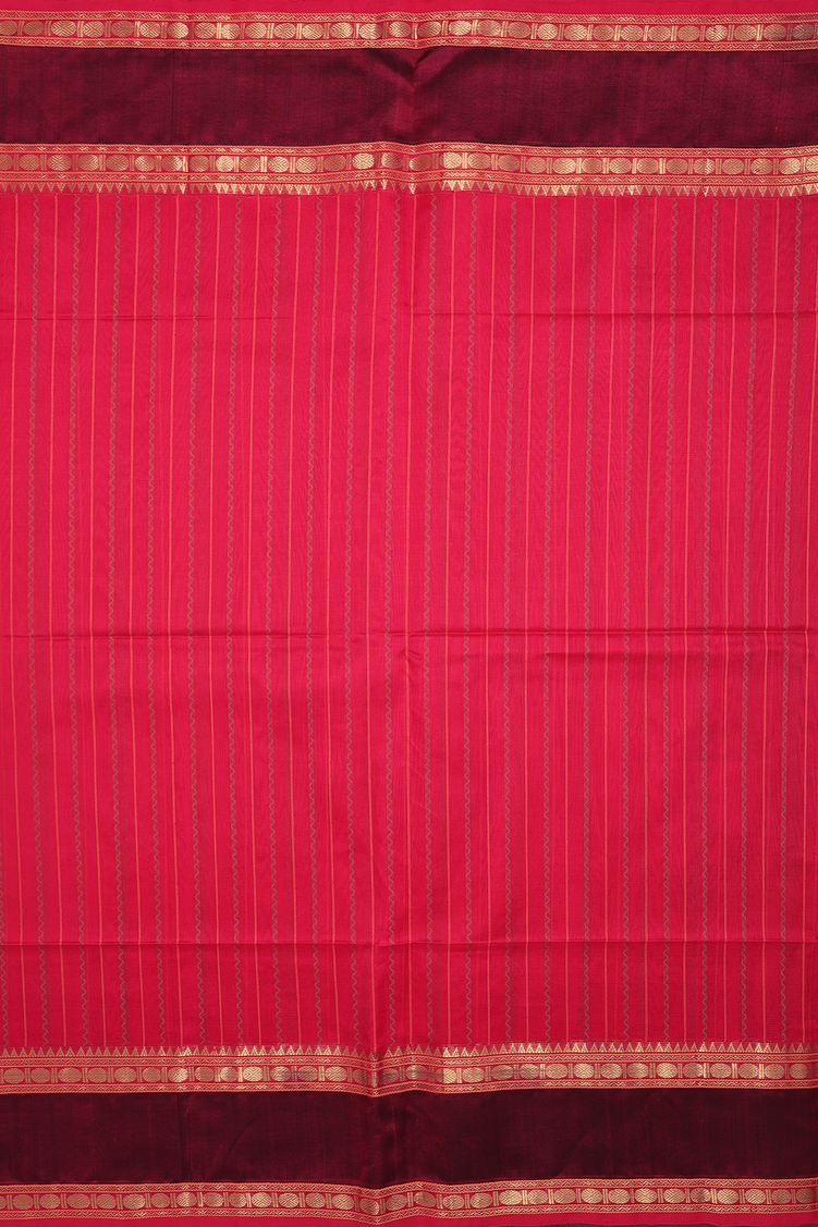 Traditional Silk Cotton Saree In Red With Stripes Design