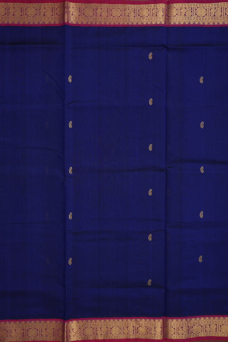 Traditional Silk Cotton Saree In Royal Blue With Paisley Buttas