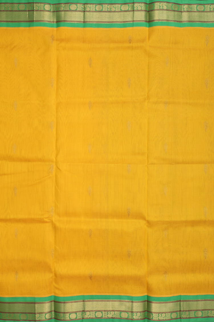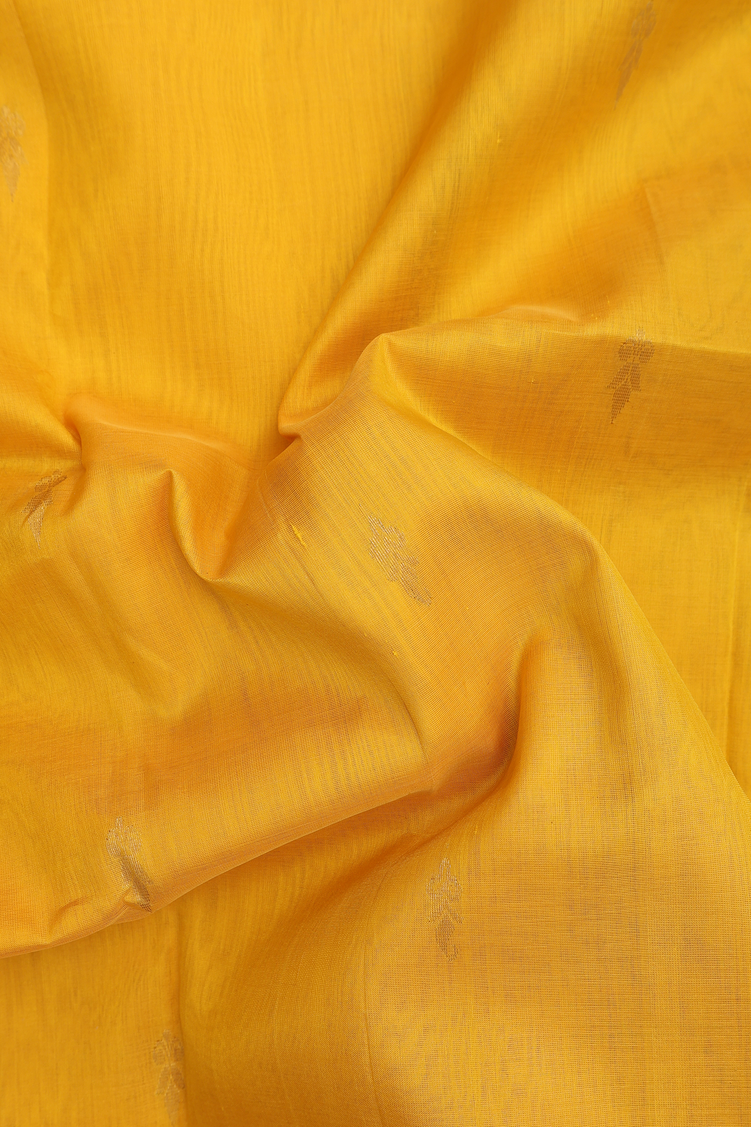Traditional Silk Cotton Saree In Yellow With Floral Buttas