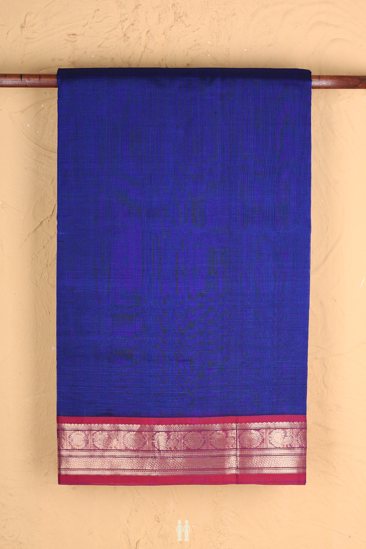 Elevate your wardrobe with this exquisite traditional silk cotton saree in royal blue, accented by a striking contrast border. Its rich texture blends silk's sheen with cotton's comfort, offering a graceful drape suitable for both festive occasions and formal events. This saree combines timeless elegance with effortless sophistication, making it a refined choice for those who appreciate classic craftsmanship.