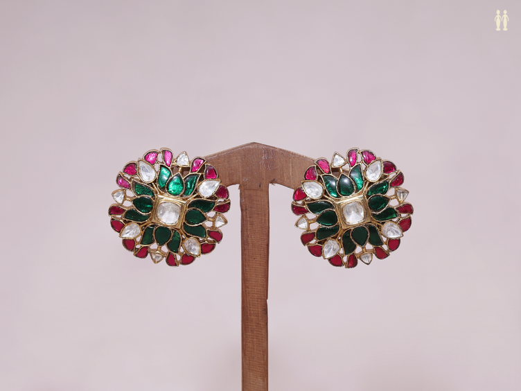 Tri Color Stone Gold Plated Pure Silver Stud Earrings