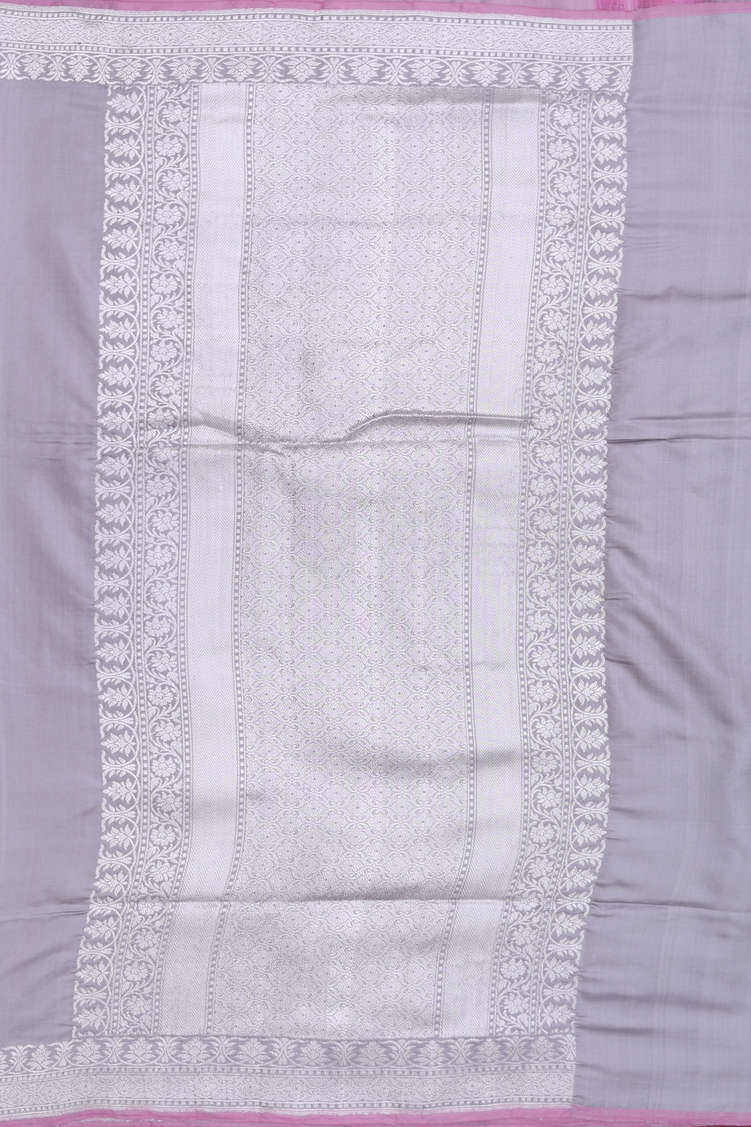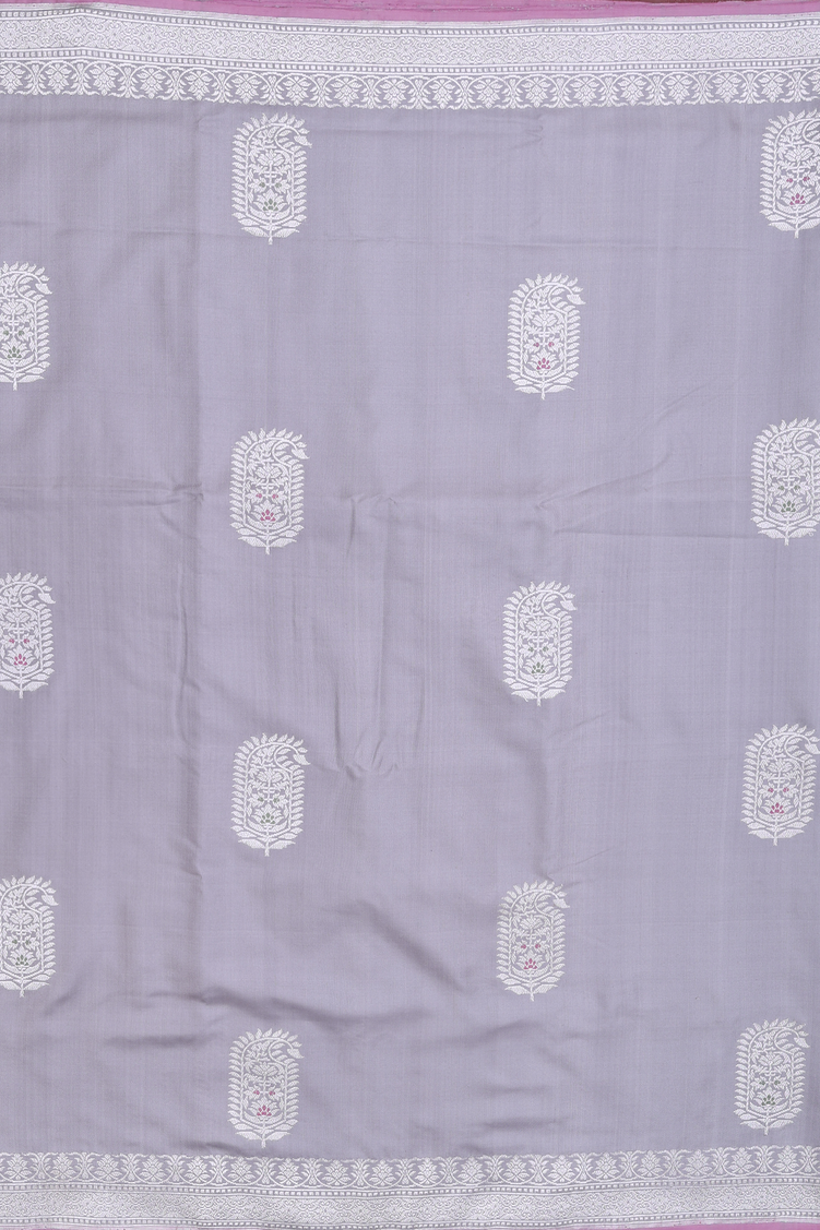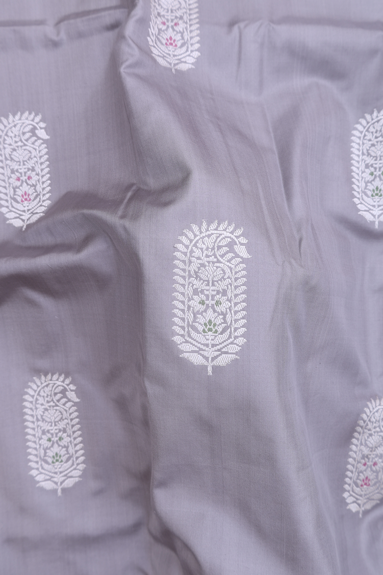 Banarasi Silk Saree In Grey With Threadwork Motifs