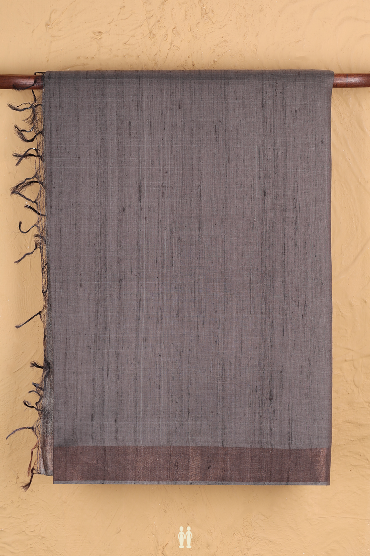 Tussar Madhubani Silk Saree Grey With Zari Border