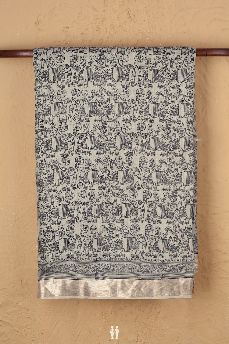 Tussar Silk Saree In Beige With Elephant Printed Design