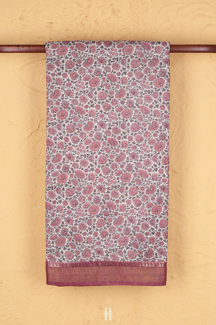 Tussar Silk Saree In White With Floral Design