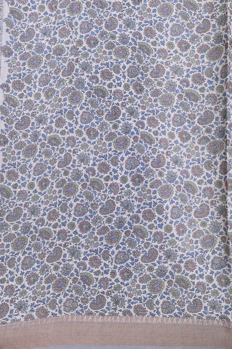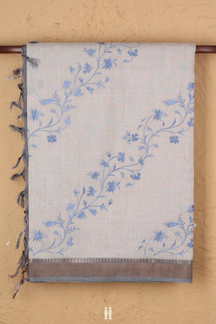 Tussar Silk Saree In Beige With Floral Embroidered Design