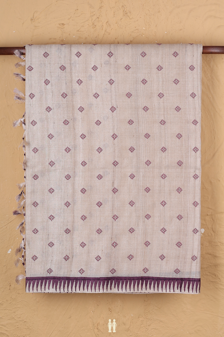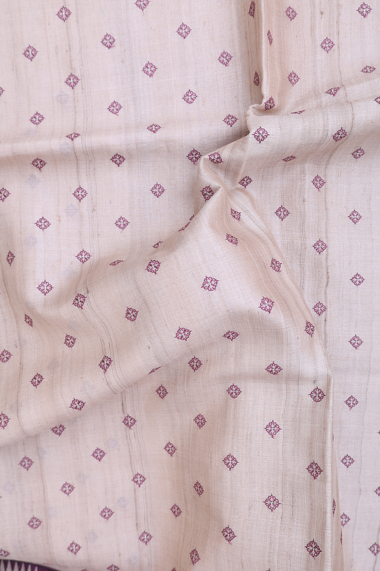 Tussar Silk Saree In Beige With Threadwork Buttas