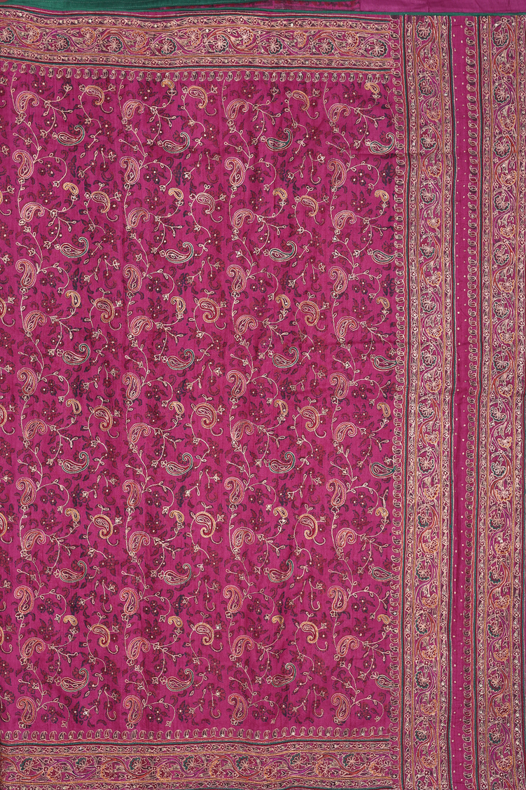 Tussar Silk Saree In Berry Purple With Paisley Design
