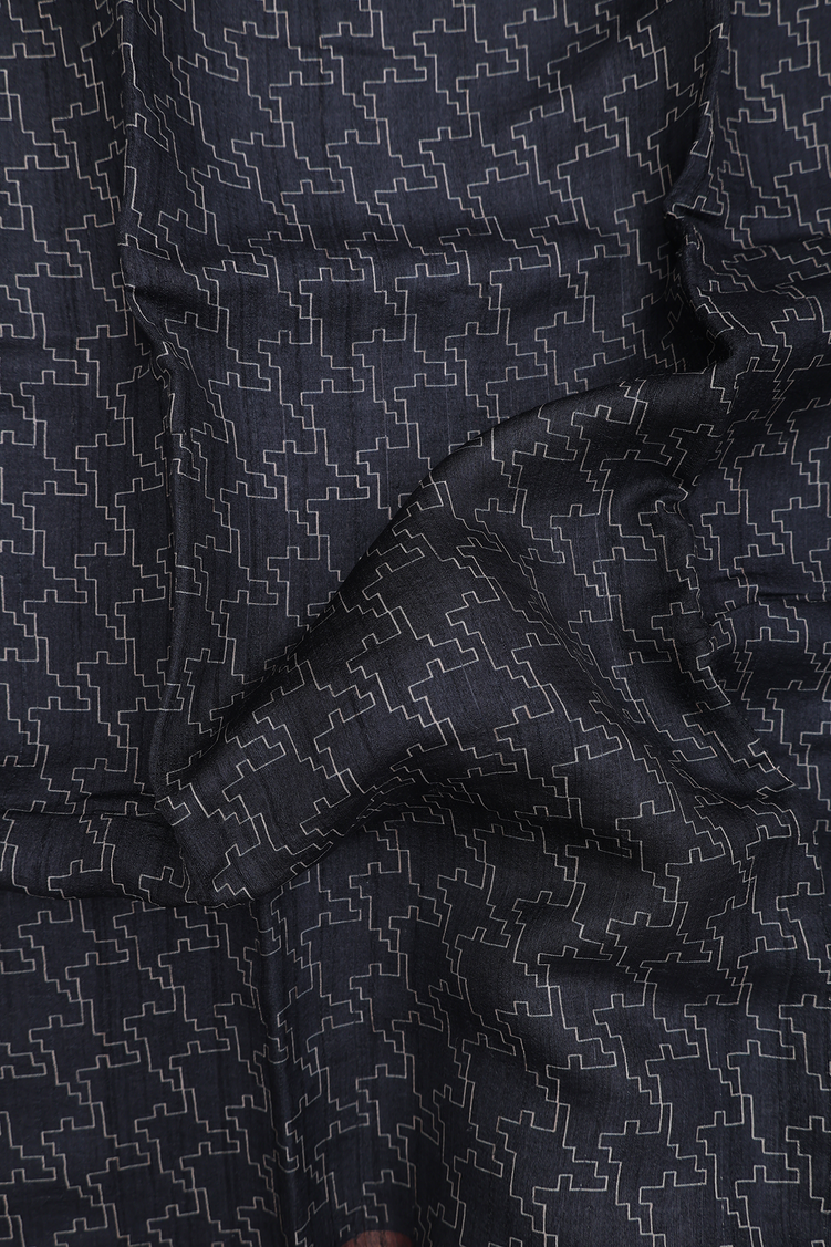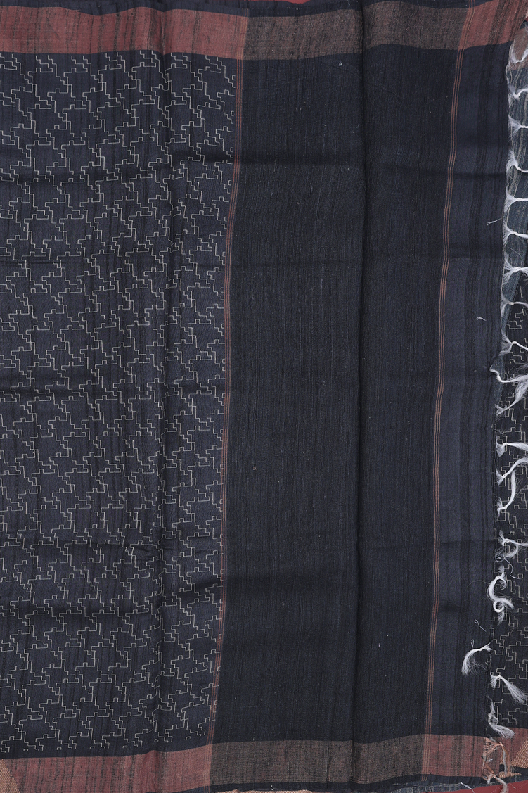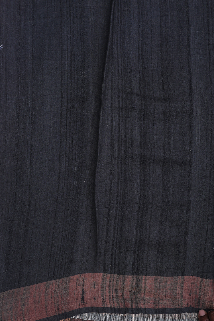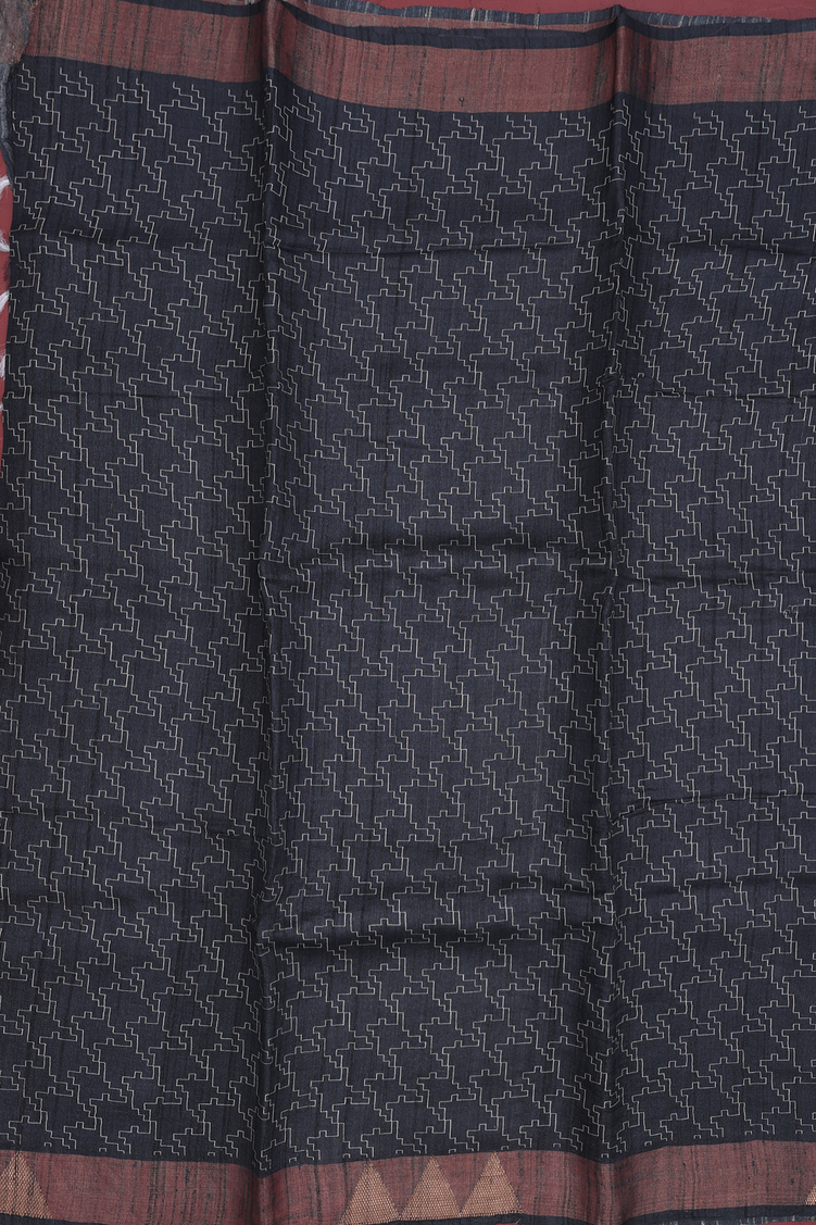 Tussar Silk Saree In Black With Allover Design