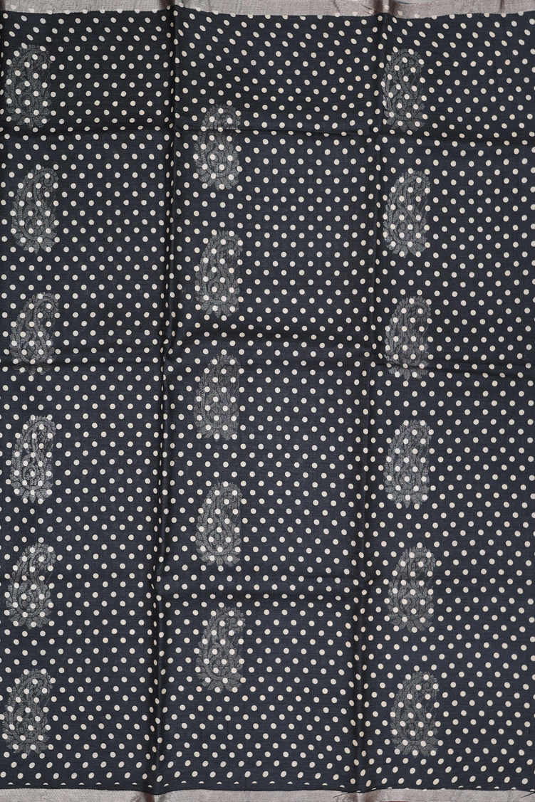 Tussar Silk Saree In Black With Printed Buttas