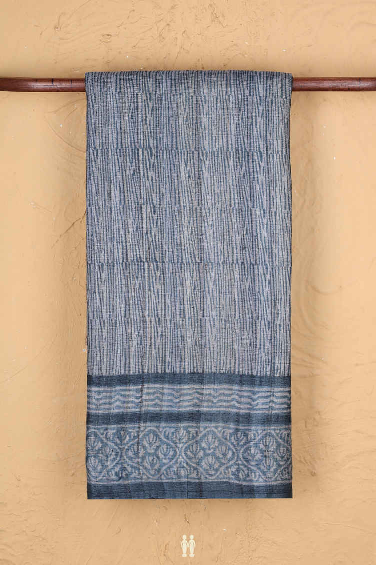 Tussar Silk Saree In Blue With Allover Design