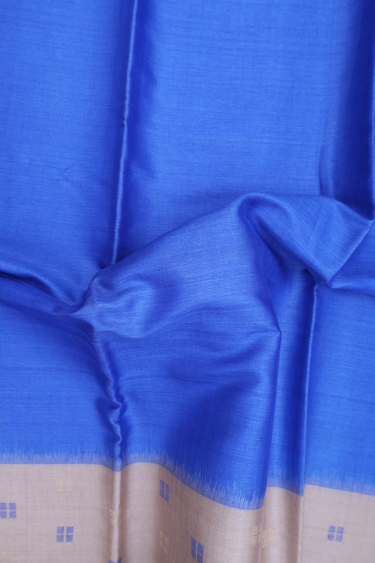 Elevate your ethnic wardrobe with this exquisite tussar silk saree in a serene blue hue. Crafted from premium tussar silk, known for its natural sheen and luxurious drape, this saree features a striking contrast border that adds contemporary elegance to traditional styling. The fabric's inherent texture creates a refined aesthetic, perfect for festive occasions, celebrations, or formal gatherings.Â