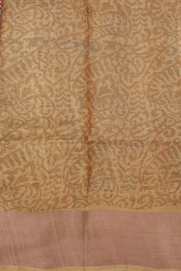 Embrace timeless elegance with this blue tussar silk saree, adorned with delicate floral embroidery. The luxurious silk fabric enhances comfort and drape, while the intricate floral patterns add a refined charm perfect for special occasions. This saree effortlessly blends tradition with sophisticated style.