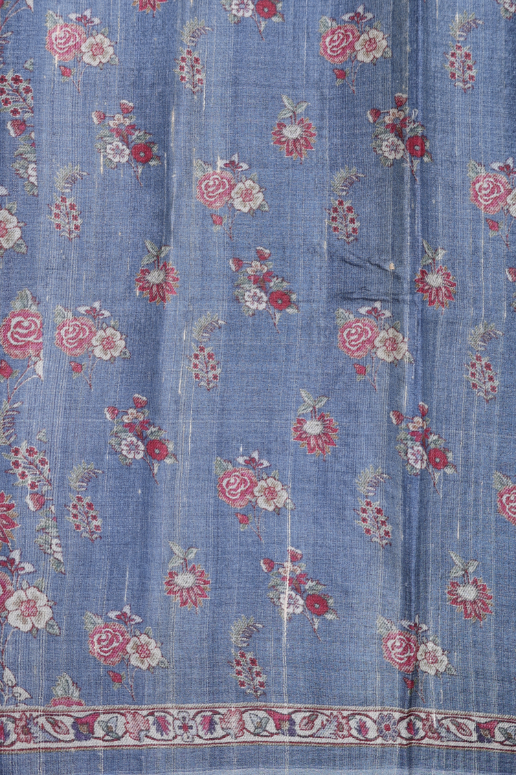 Tussar Silk Saree In Blue With Floral Design