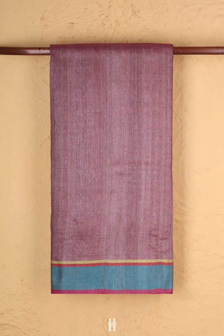 Tussar Silk Saree In Blush Mulberry With Contrast Border