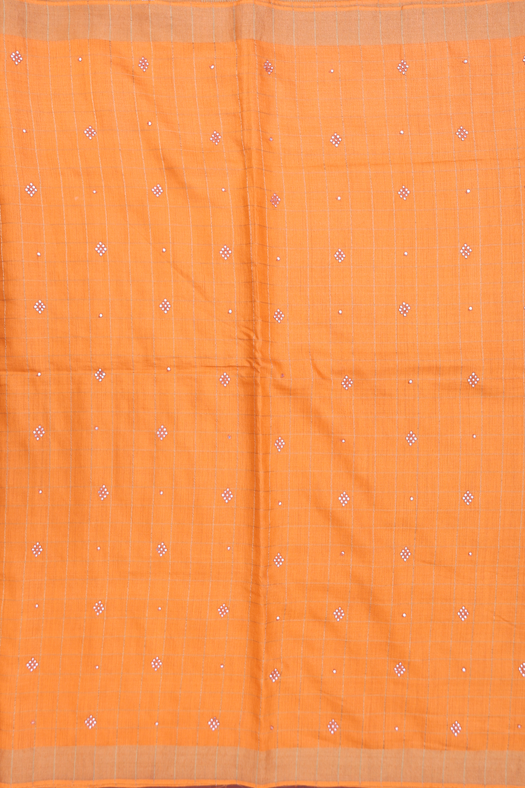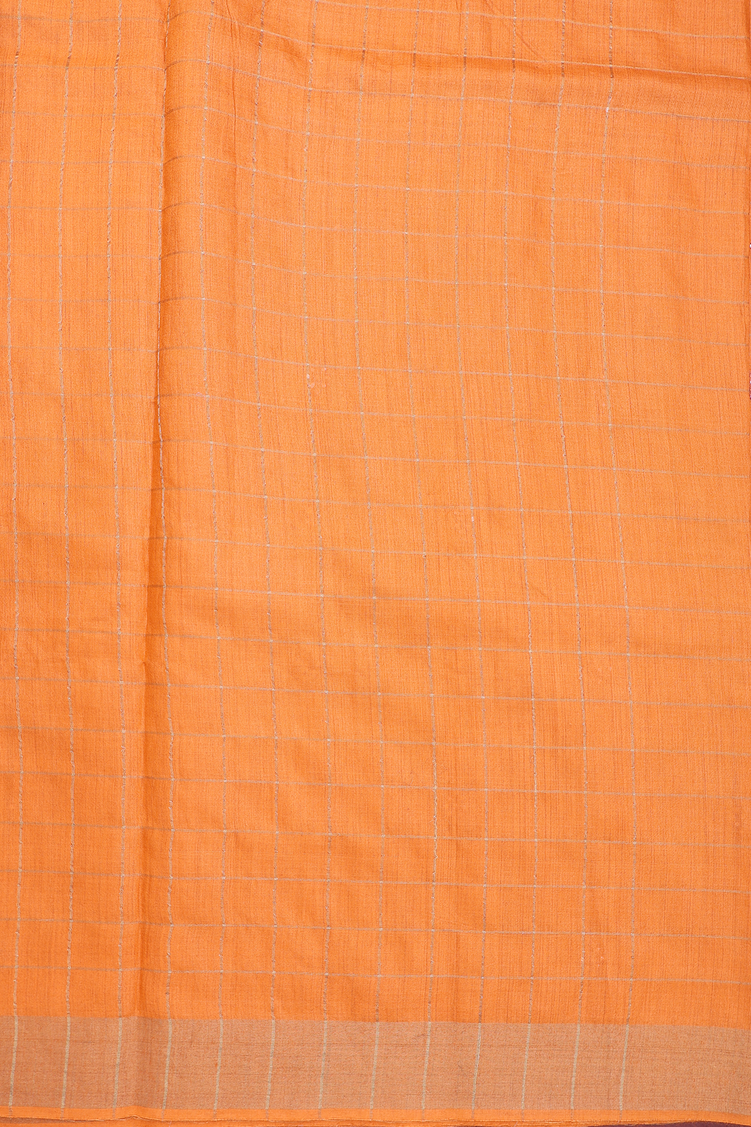 Tussar Silk Saree In Bright Orange With Checks Design