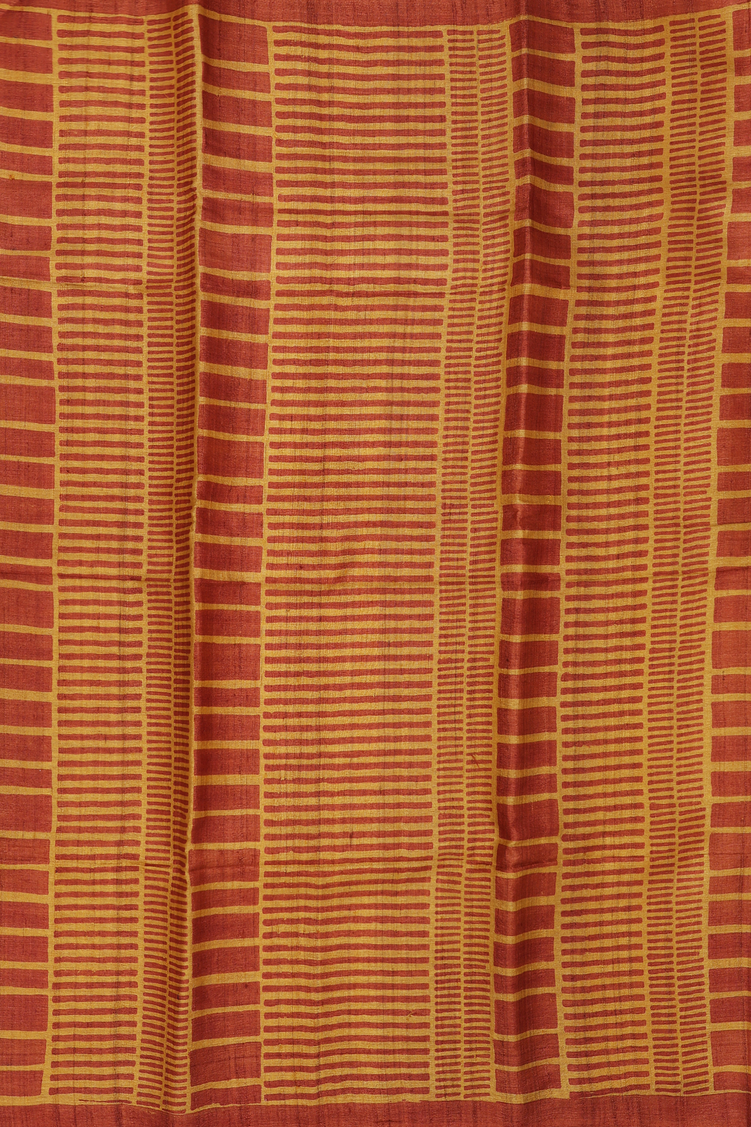 Tussar Silk Saree In Brown And Yellow With Printed Design
