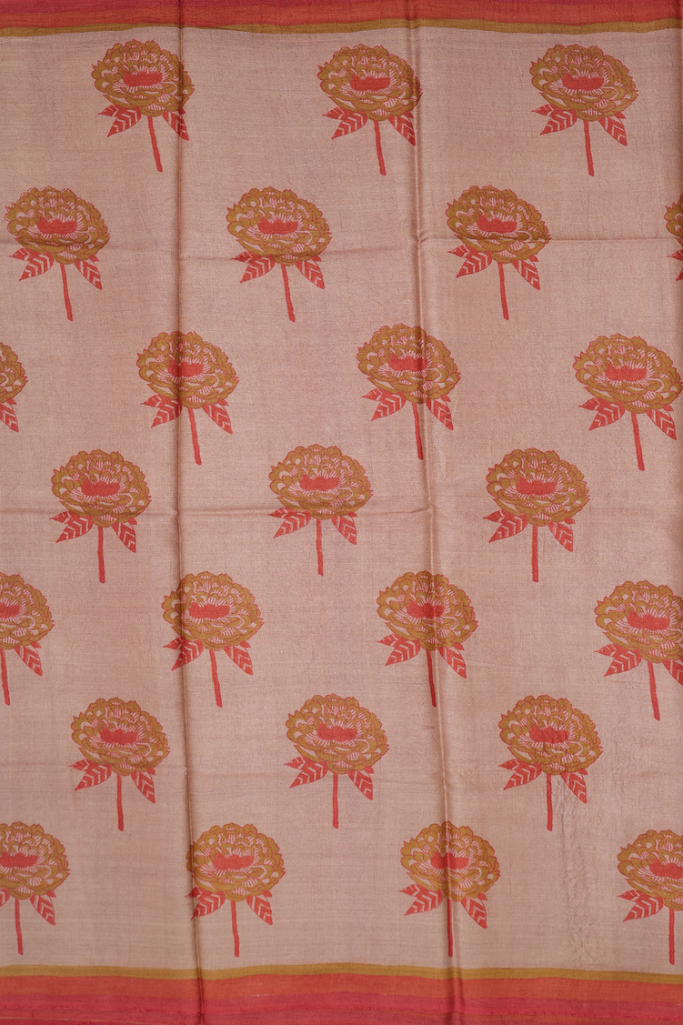 Tussar Silk Saree In Brown With Floral Design
