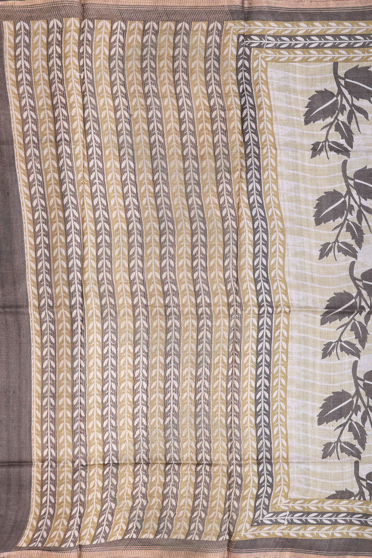 Tussar Silk Saree In Brown With Leaf Printed Design