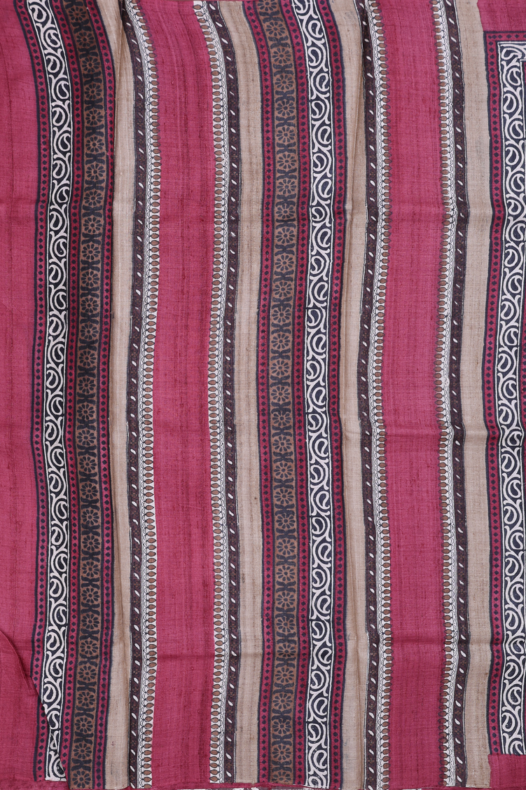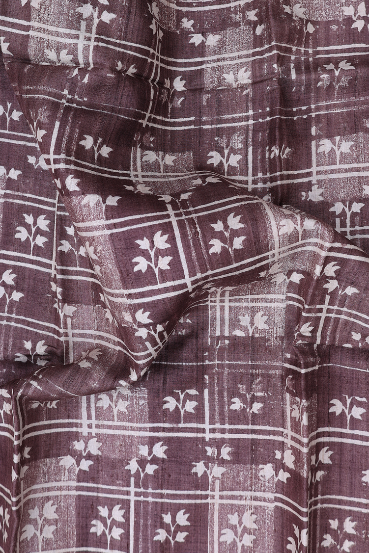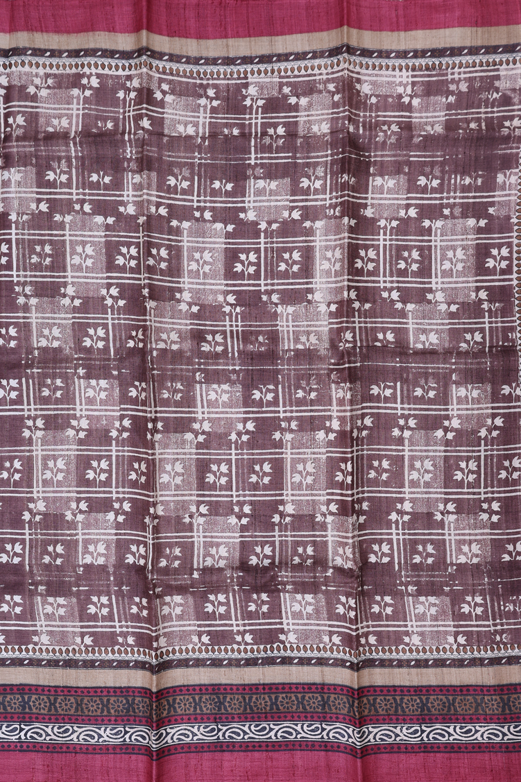 Tussar Silk Saree In Cocoa Brown With Printed Design