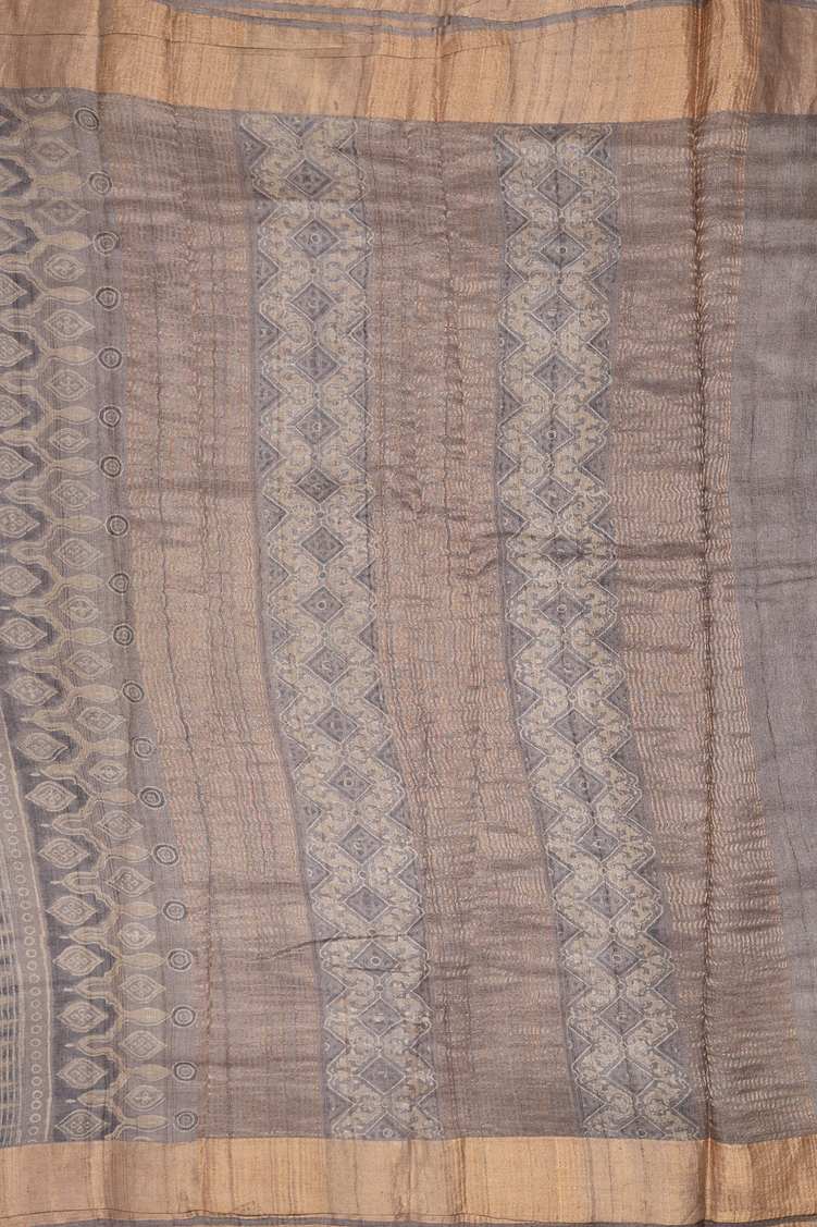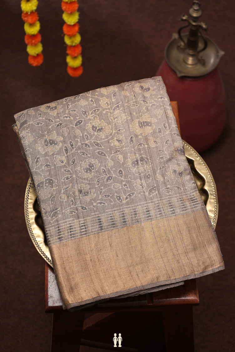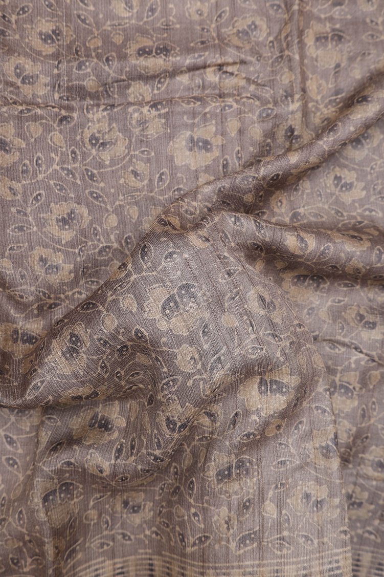 This elegant brown tussar silk saree features a delicate printed design that enhances its natural texture and sheen. Perfect for sophisticated occasions, it offers a graceful drape and comfortable wear. The rich tone and refined pattern make it an ideal choice for those seeking timeless elegance with subtle artistic flair.