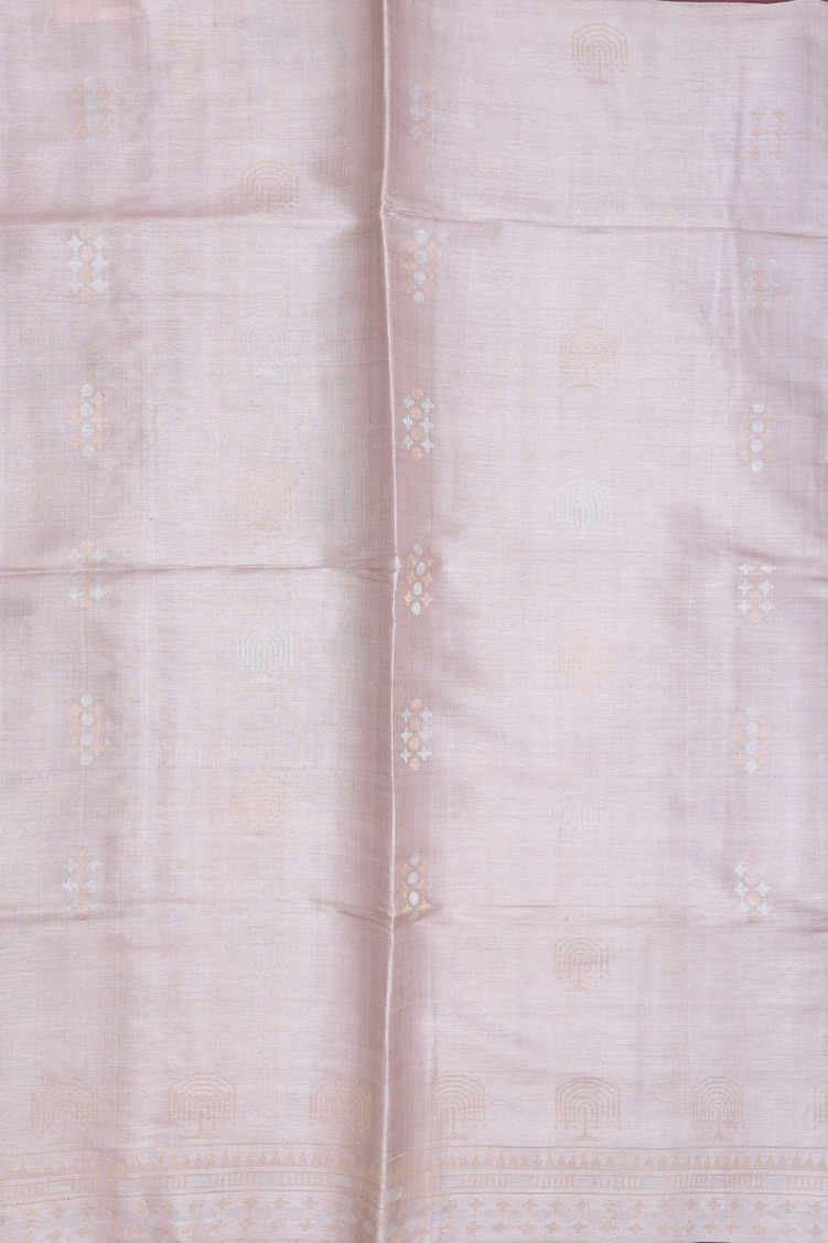 Tussar Silk Saree In Brownish Grey With Zari Buttas