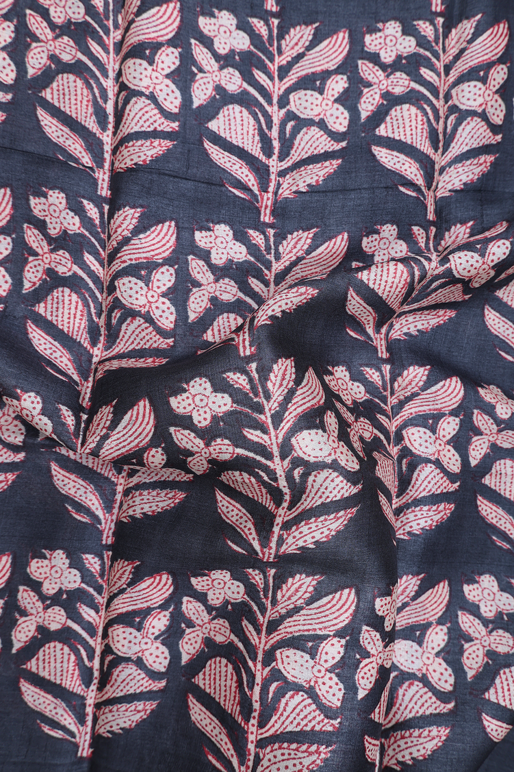 Drape yourself in timeless elegance with this exquisite tussar silk saree in sophisticated charcoal grey. The lustrous fabric showcases the natural texture and subtle sheen characteristic of premium tussar silk, while delicate floral motifs add refined beauty to the weave. Perfect for festive occasions, celebrations, or formal gatherings, this saree effortlessly combines traditional craftsmanship with contemporary style.Â