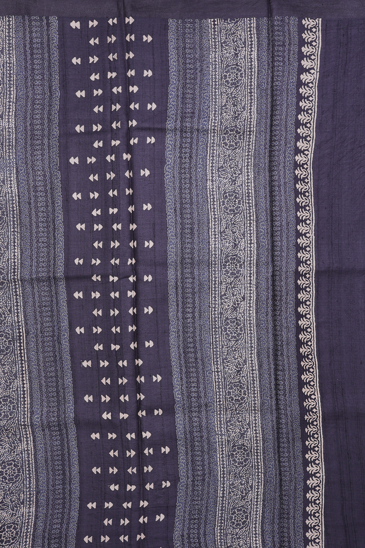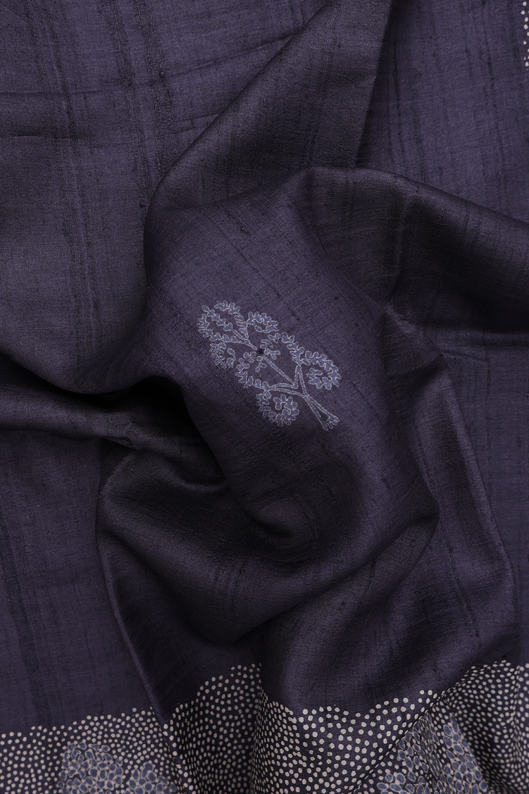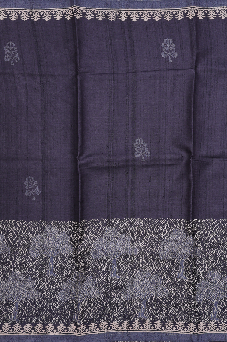 Tussar Silk Saree In Charcoal Grey With Printed Design