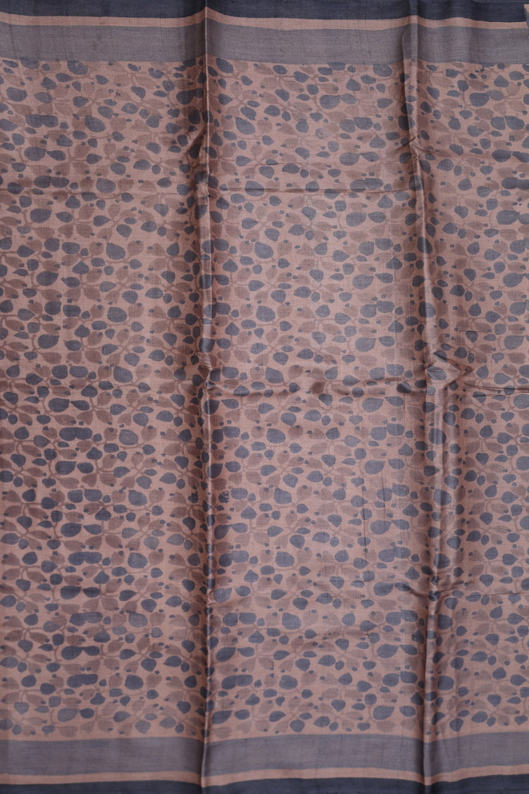 Tussar Silk Saree In Cocoa Brown With Printed Design