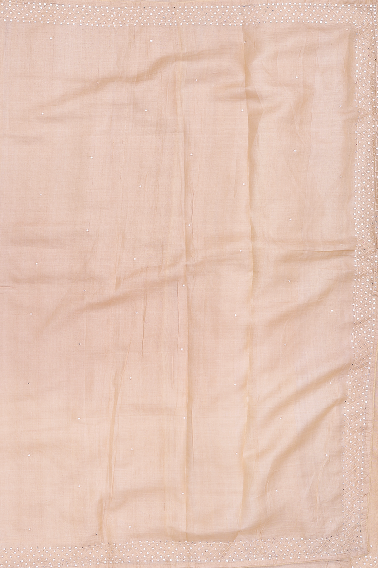 Elevate your elegance with this tussar silk saree in a refined coffee cream shade, exquisitely adorned with delicate mirror work buttis. The subtle shimmer of mirrors enhances its timeless texture, offering a graceful blend of tradition and style. Perfect for sophisticated occasions, this saree embodies understated luxury and artisanal craftsmanship.