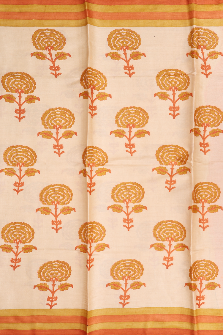 Tussar Silk Saree In Cream Color With Floral Motifs