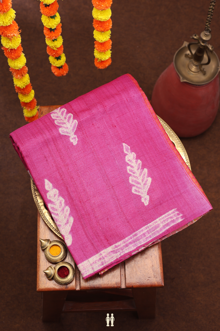 Tussar Silk Saree In Dark Pink With Shibori Design