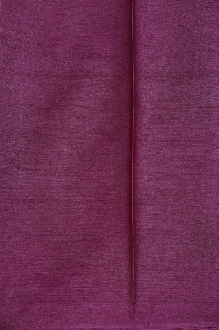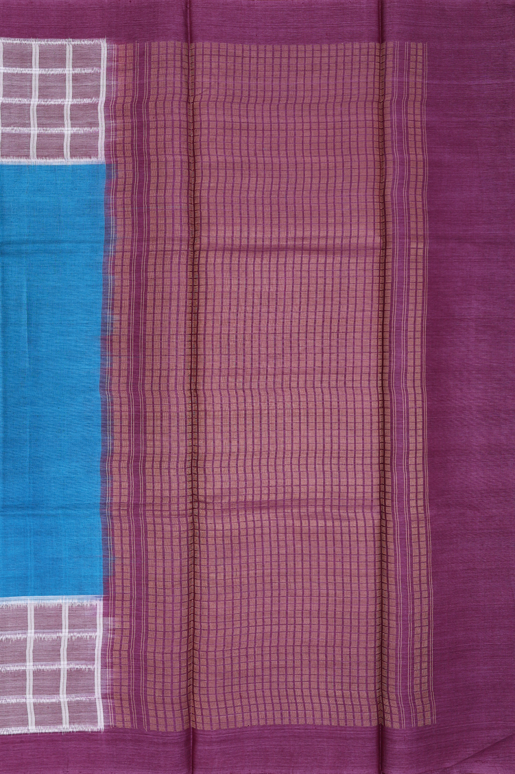 Drape yourself in timeless elegance with this exquisite tussar silk saree, rendered in a serene cerulean blue with contrast plum Purple border pallu and blouse. The lustrous fabric showcases the natural texture and subtle sheen characteristic of tussar silk, while the contrasting border adds a striking visual dimension. Perfect for festive occasions, celebrations, or when you desire an understated yet refined appearance, this saree effortlessly transitions from traditional gatherings to contemporary settings.Â